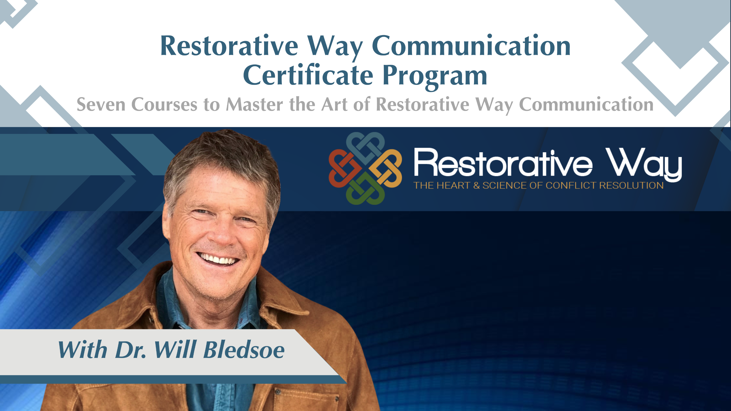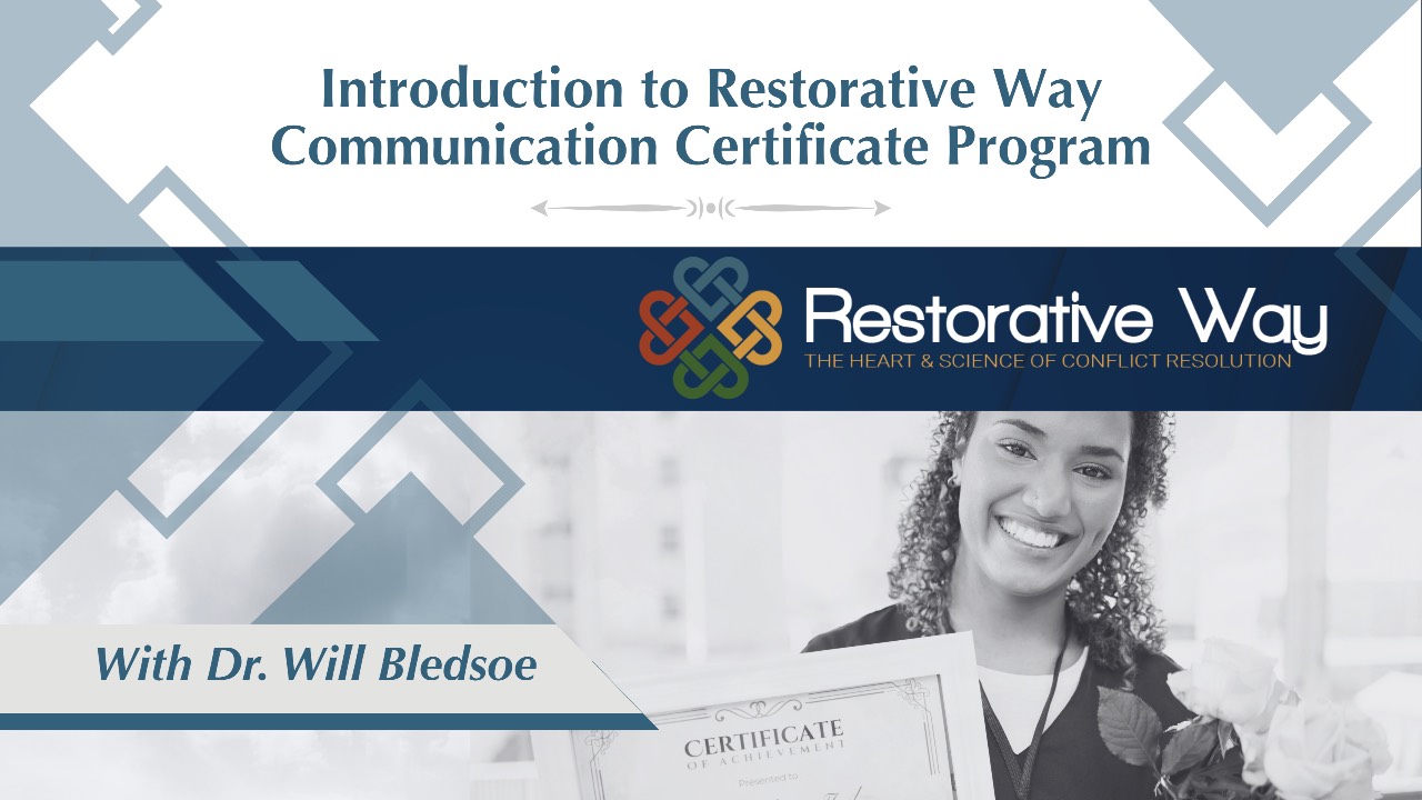 This free overview of the Restorative Way Communication© Certificate Program will introduce your teacher, Dr. Will Bledsoe, who will describe the goals and lessons within these courses and help you determine if they’re right for you. Welcome!